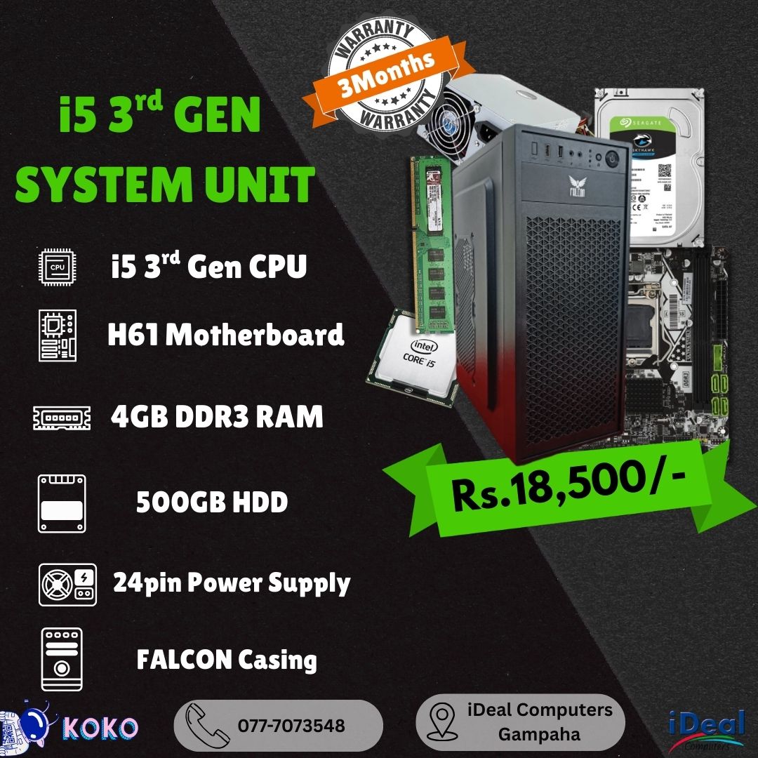 Intel Core i5 -3rd Gen Processor 4GB Ram DDR3 500GB HDD H61 Motherboard ATX Casing with Power Supply (03 Months Warranty) |