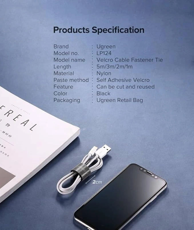 The UGREEN Velcro Strap 5 Meter stands out as a flexible, durable, and reusable cable management solution. Its extra-long length caters to a variety of needs, allowing for easy customization and application across different scenarios. Whether for home, office, or travel, this strap ensures cables and items remain organized, making it a practical addition to your accessories.